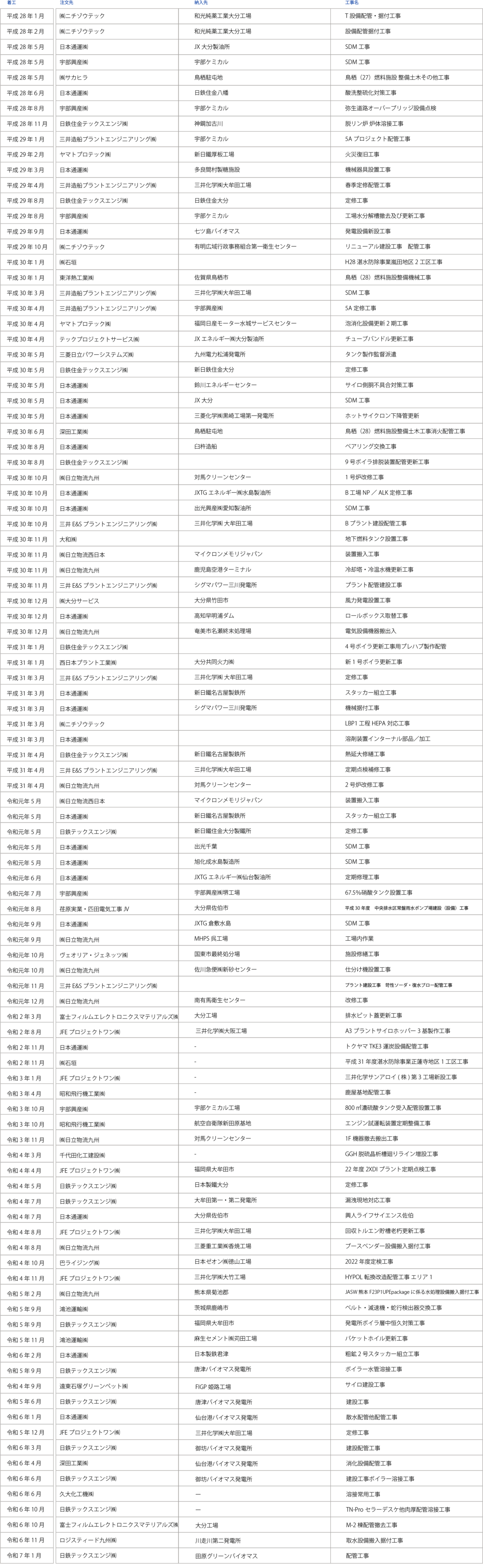 プラント工事 (平成28年からの実績の一部を表記しています)